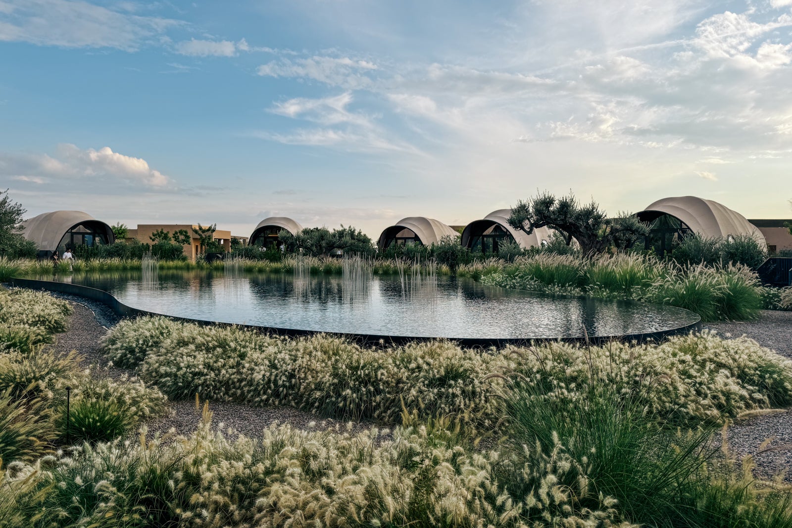 Past the entrance desk, the foyer featured loads of seating and an attention-grabbing mixture of textures and patterns, from gleaming marble flooring to an inventive mahogany wall to turquoise seating. An elegant wood-and-marble bar sat under orb-shaped lighting fixtures, and thru doorways on both facet of the bar, friends might exit to an out of doors seating space overlooking the property’s lagoon, which was encircled by a bounty of reeds and sizable olive timber.