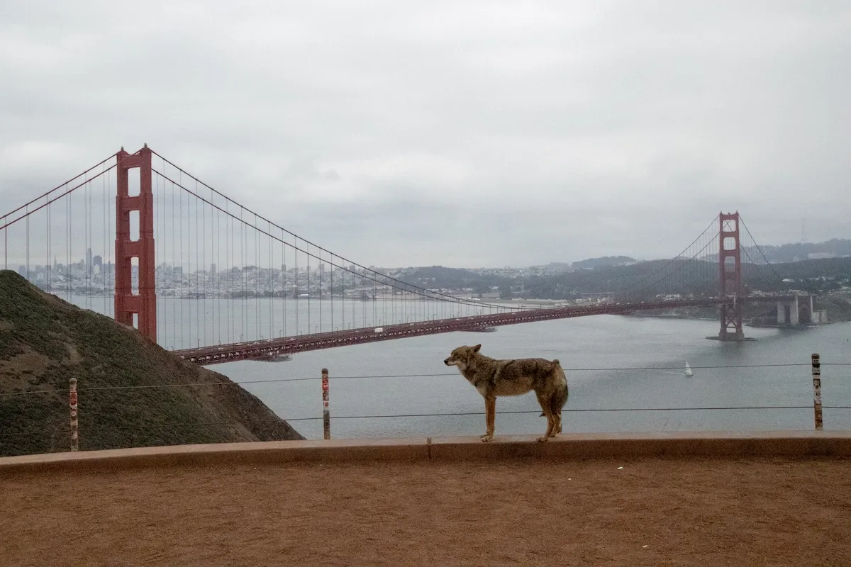 Try coyotes (or, a minimum of considered one of them!) taking part in in a subject close to the Golden Gate Bridge: