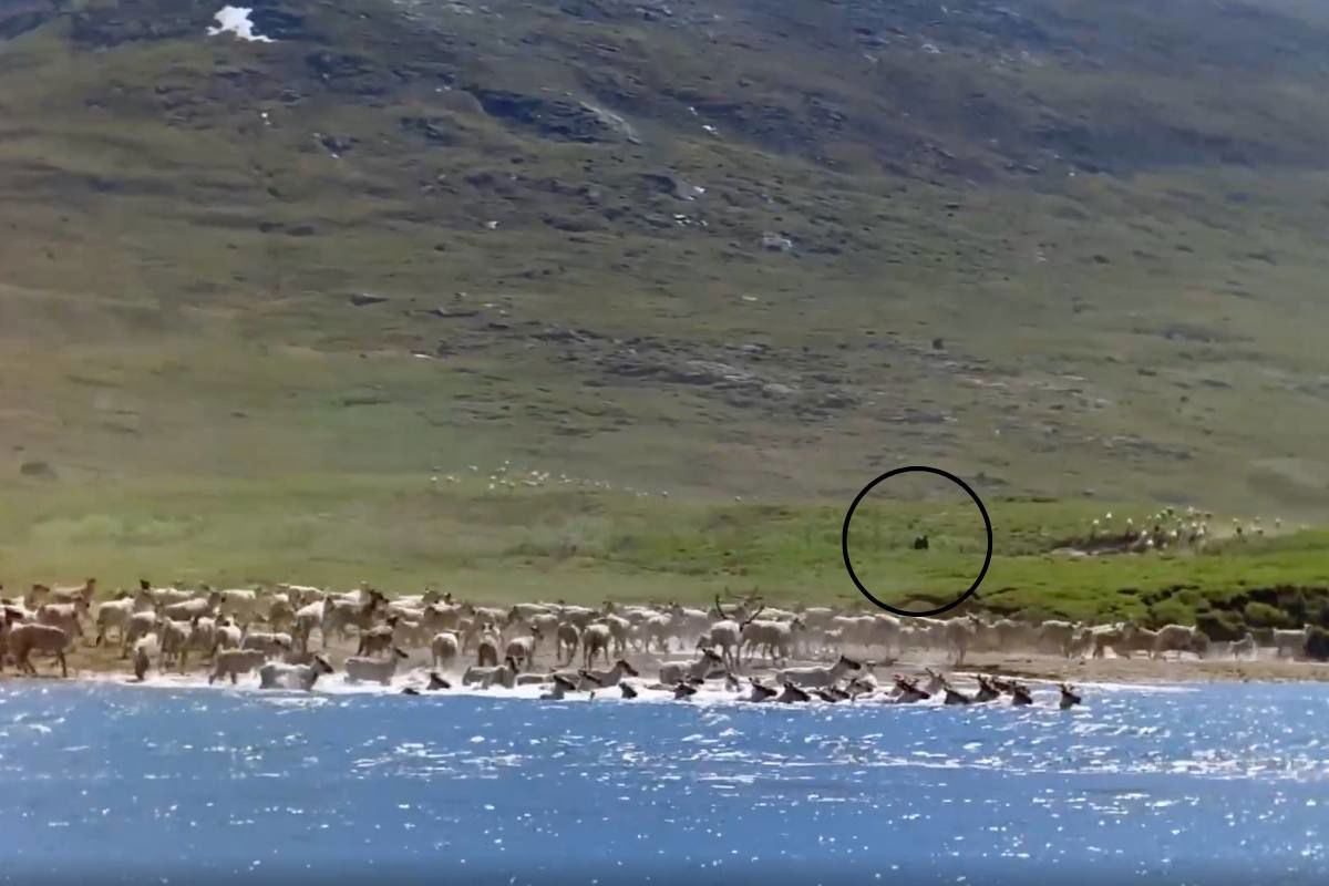 4 seconds into the clip, you see a black determine seem in the course of the display behind the caribou herd. It runs alongside in the identical route because the caribou herd for 3 seconds after which disappears behind a hill or ridge (it’s onerous to inform).