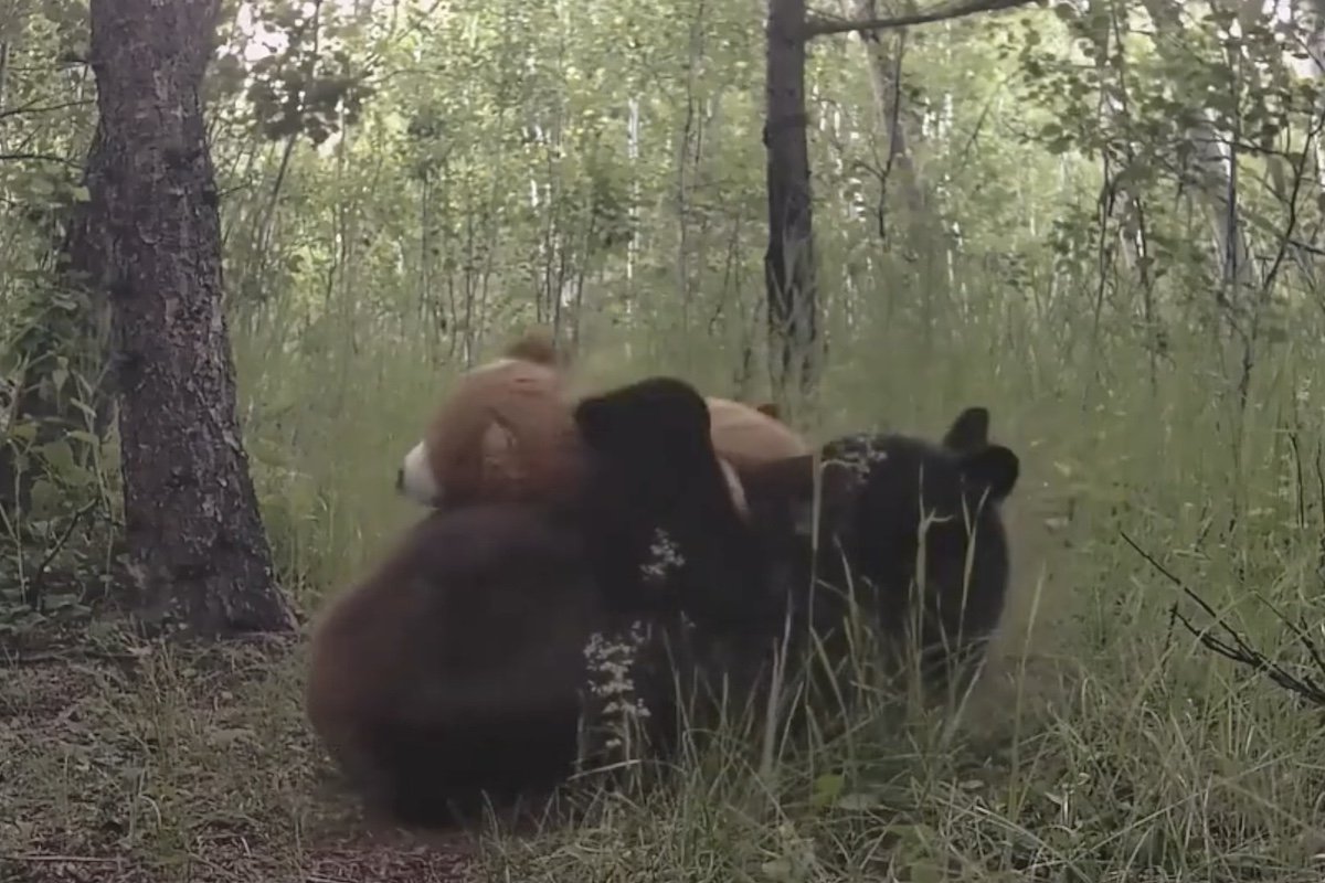 On this case, the bait labored. The primary playful bear within the video rolls round with a stuffed model of itself, having a grand-old time.